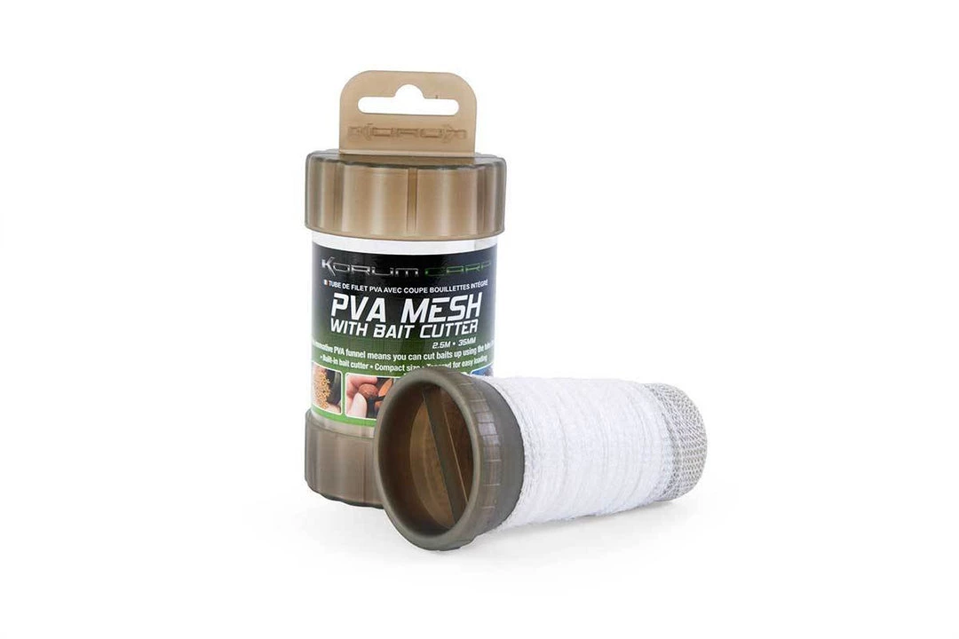 Theย Korum PVA Mesh with Bait Cutter is really two tools for the price of one, primarily it’s a PVA mesh dispenser with a tapered easy release cone, and secondarily the wedge on the bottom can be used to cut boilies and other baits cleanly and efficiantly.