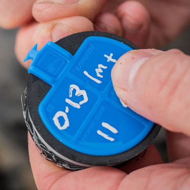 The Revalution spools are an EVA spool with a special plastic rotating pin system, eliminating the need for independent pins that can be easily lost. There is an area on the spool for easy rig identification, displaying Rig length, line diameter as well as hook size and type. Preston have used a soft EVA foam which eliminates any chance of your hook blunting but keeps it safe and secure.