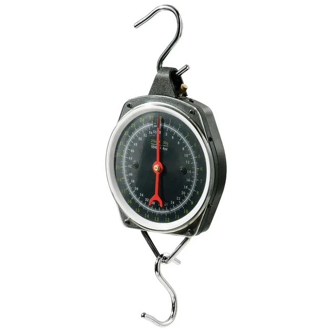 Daiwa Mission Dial Scales, The Daiwa Mission Dial Scale is a must-buy accessory. We all know the necessity of keeping a tidy bank and a small compact scale is exactly what you need when you want to swiftly and efficiently weigh that latest catch. Whether you are looking to do a spot of sea fishing, predator fishing or carp fishing, this handy little scale is the perfect tool for the job. Available with two different maximum weights – either 25kg or 50kg – this scale can be used across the disciplines with ease. The scale is of an outstanding quality that makes it durable, strong and hardwearing; perfect for any weather that the British countryside might throw at you. Grab some suitable clothing and you can go out in all weathers. Furthermore, its easy to read dial means you can easily and accessibly check the weight of your latest catch without worrying that you’ve misread. With social media these days, you’re going to want to be able to accurately list the weight of your latest catch with a photo attached and with the Daiwa Mission Dial Scale you can do this with ease by quickly grabbing its compact form out of your pocket. We also advise that during transit to and from your location that you purchase a scale pouch with a padded interior and durable manufacture in order to protect your scale from any harm during travel. The scale is available in two models, 25kg (100g divisions) / 55lb (3.2oz divisions) or 50kg (200g divisions) / 110lb (8oz divisions). This means that you can choose the weight best suited for the type of fishing you plan on doing and you’ll never have to worry about getting incorrect readings as you may from a scale with a dual needle rotation. The scale features a large, 25cm diameter, easy to read dial which will allow you to quickly measure efficiently the exact size of your catch. The entire scale diameter is 170mm which means that it is a compact, handy and easy to store device which will enable you to keep your boat nice and tidy as well as allowing you to boast to your friends about the exact size of the catch you had that week. These Daiwa Mission Scales operated on a spring loaded function (unlike the balance function of traditional scales). This means that your catch pulls down on the scale, it records the weight. You can then see on the dial that the small indicator which moves along the lines can easily give you an accurate reading. What’s more, the scale has the option of seeing Kilograms or Pounds. So whichever you prefer – new money or old – can easily be measured. It also has a push button operation, allowing you to zero your scales in the confidence that you’re always going to get the correct reading. Furthermore, the scales easy grip handle makes even the 50kg heaviest of fish easy to measure. Unlike digital scales, these scales do not require a battery, so you don’t have to worry about being left on the bank with what looks like the catch of a lifetime only to discover that your scales are completely useless. Daiwa is a brand that you can trust to give you accurate readings time after time with this Mission Dial Scales.