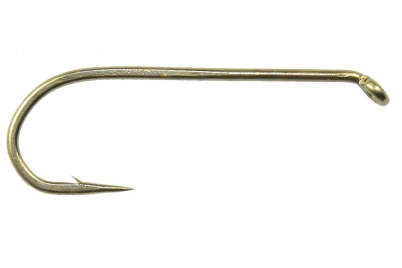 Spec: Down eye, 1x strong, 4x long shank, round bend, forged, bronze, barbed.