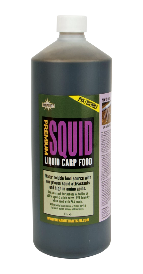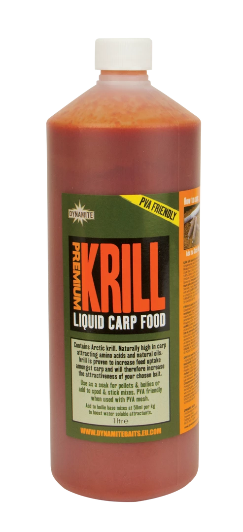 Dynamite Liquid Carp Food 1ltr is saturated in amino acids yeast and natural sugars giving the carp a digestible liquid food for carp. Use for soaking pellts or boilies or add to any mix desired. PVA friendly liquid. 1 litre bottle.