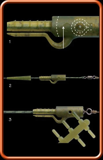 Alternatively the lead retaining arm can be cut back for more efficient lead ejection when targeting big carp in weedy or snaggy waters and can be used with monofilament, anti-tangle tubing or leadcore.