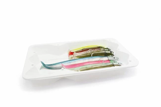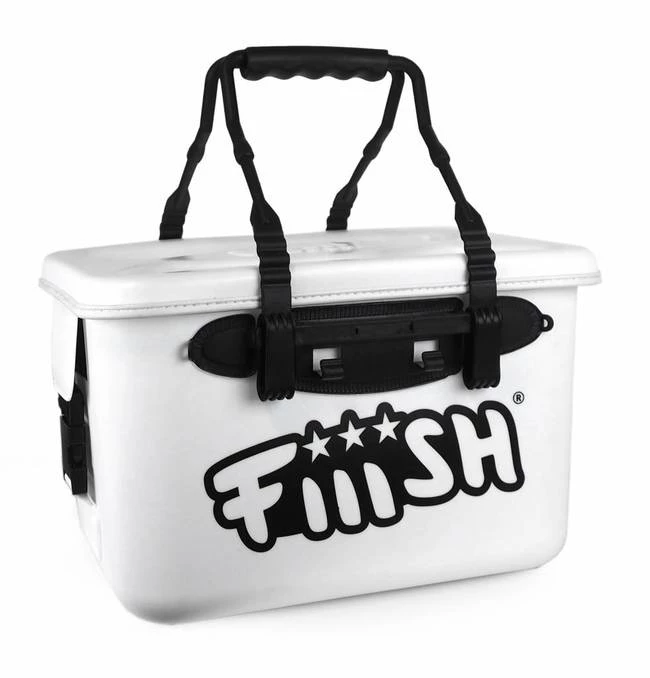 A small bakkan (lure storage) by Fiiish. Comes with lid with click-on straps.ย Sturdy waterproofย storage forย keeping your shads.ย This Bakkan includes 4 softbait trays (as pictured in a random black or white colour). Also has a handy double carry handle which joins together to become one handle.