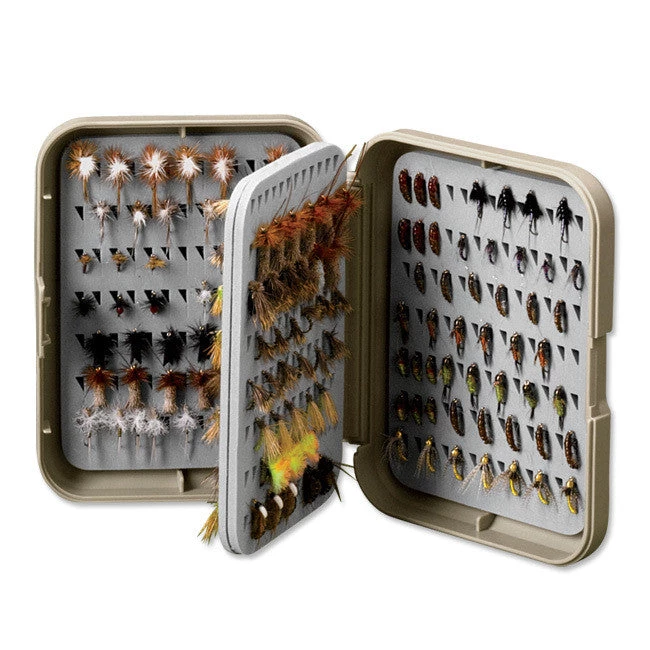 Theย Orvis Posigrip Flip Page Fly Box has triangle cut out foam for perfect fly arrangement and neatness. Special added middle page gives excellent additional storage.