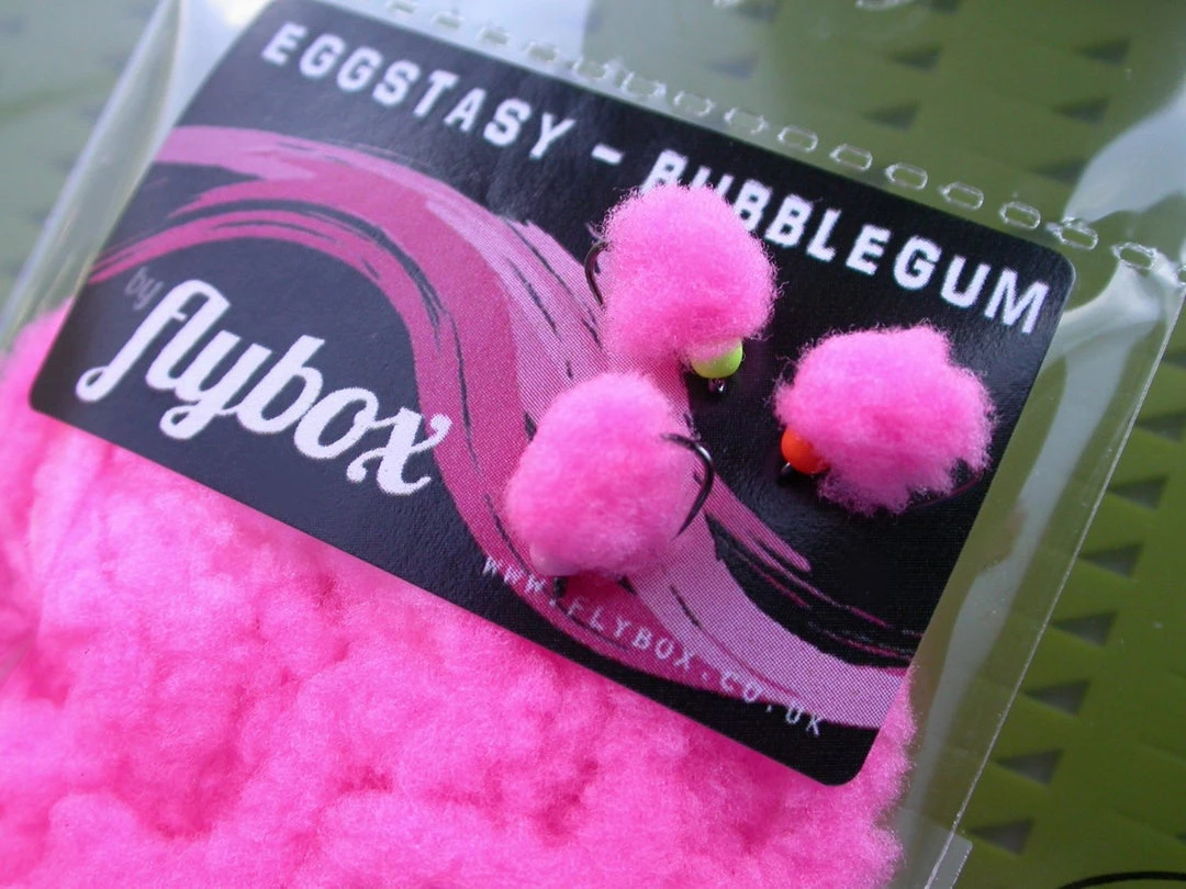 Eggstasy is a revolutionary new product for tying egg-flies. Unlike standard egg-yarn, which involves spinning yarn, Eggstasy is built on a core which means you can simply tie it like a chenille. The other huge difference that sets Eggstasy apart from other yarns is the fibre itself. It’s the first material to be made from new ‘Next Generation’ (NX-Gen Fibre). This material is a game-changing synthetic. NX-Gen Fibres are micro thin and are designed to trap water forming an almost slush-like texture when wet. Almost like a sponge. The fibres are also translucent which allows light to travel through the egg/blob – unlike standard egg yarn. NX-Gen Fibre has great movement, unlike egg yarn which remains static. In the water the egg looks almost life-like. Please note – each photograph’s colour is it its wet, slush-state – because there is a 30% colour change when wet.
