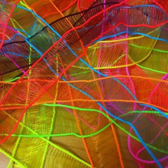 Single-Wave Pseudo is a single-wave Synthetic Organza Ribbon โ ie, it doesnโt have the cross-fibres found in most organza which create a wavy fibre effect. Instead, the fibres on Single-Wave are perfectly straight and the material doesnโt require preparation, simply cut it and go!. Another big advantage of Single-Wave Pseudo is the โStretch-Coreโ, which makes the material much easier to tie with, particularly for smaller flies like nymphs.ย Another key feature of Stretch-Core is that it is non-translucent, unlike organza, which helps create a solid block colour tone to the body. Weโve dyed Single-Wave into a full range of fluorescent colours plus some natural favourites like, black, claret & olive. Each pack contains 2mtr of material.