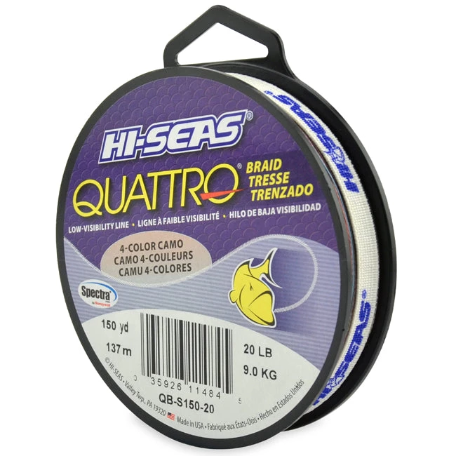 Quattro Braid camouflage fishing line provides excellent performance while retaining all the qualities that anglers have come to love, especially its ability to disappear underwater due to the extreme low-vis scientific proven 4-color combination of blue, black, green and red, patterned in short random lengths. Quattro Braid does for fishing line what camouflage clothes do for a hunter – it breaks up visual patterns so it blends into the background. Its unique formulation gives it incredible linear and impact strength with excellent abrasion resistance.