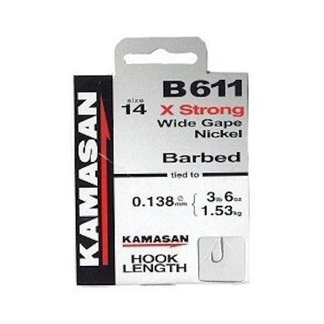 Kamasan B611 – X Strong Wide Gape Nickel Hooks to Nylon Barbed
