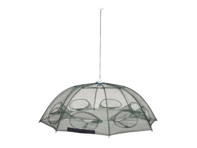 A small but still very effective bait trap. Put a few crumbs of bread or ground bait into the trap and you will soon lure a bunch of minnows into the trap. Select the minnows you need and release carefully the rest. This trap is easy to unfold and can be used in many places. Always check with local fishing regulations and rules.