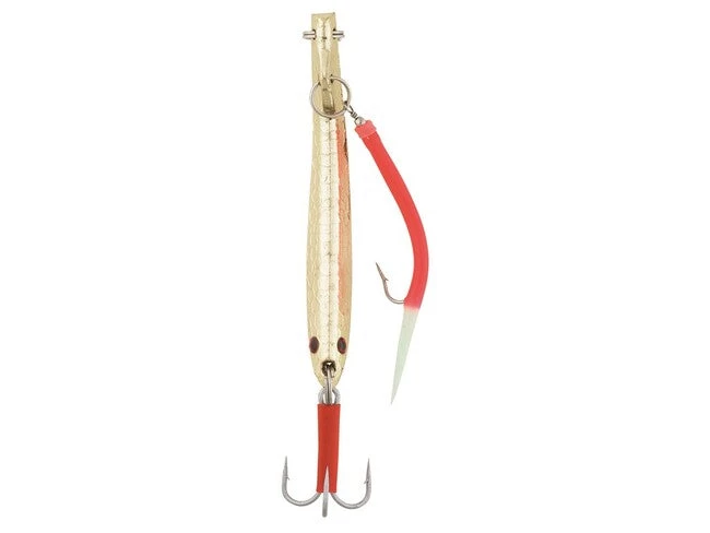 A Unique non-led pilker that combines three well proven designs for catching more and bigger fish. The banana shape makes those crazy movements. The hammered surface both look good and send good vibes. The double hook position ensures you many extra fish – each day!