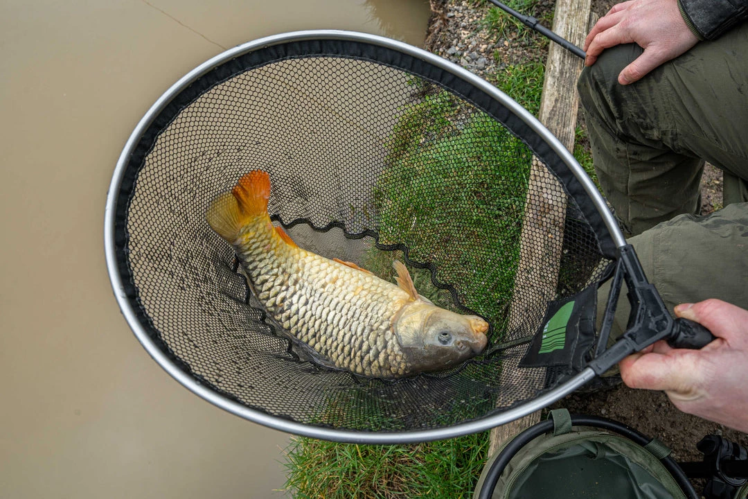 This strong and lightweight spoon net uses a soft, free-flowing net with a special design to reduce the chance for hooks to get caught in the mesh. Made using a powerful frame and reinforced spreader block. A retaining tag at the base of the mesh also means you can transport the net easily between swims.
