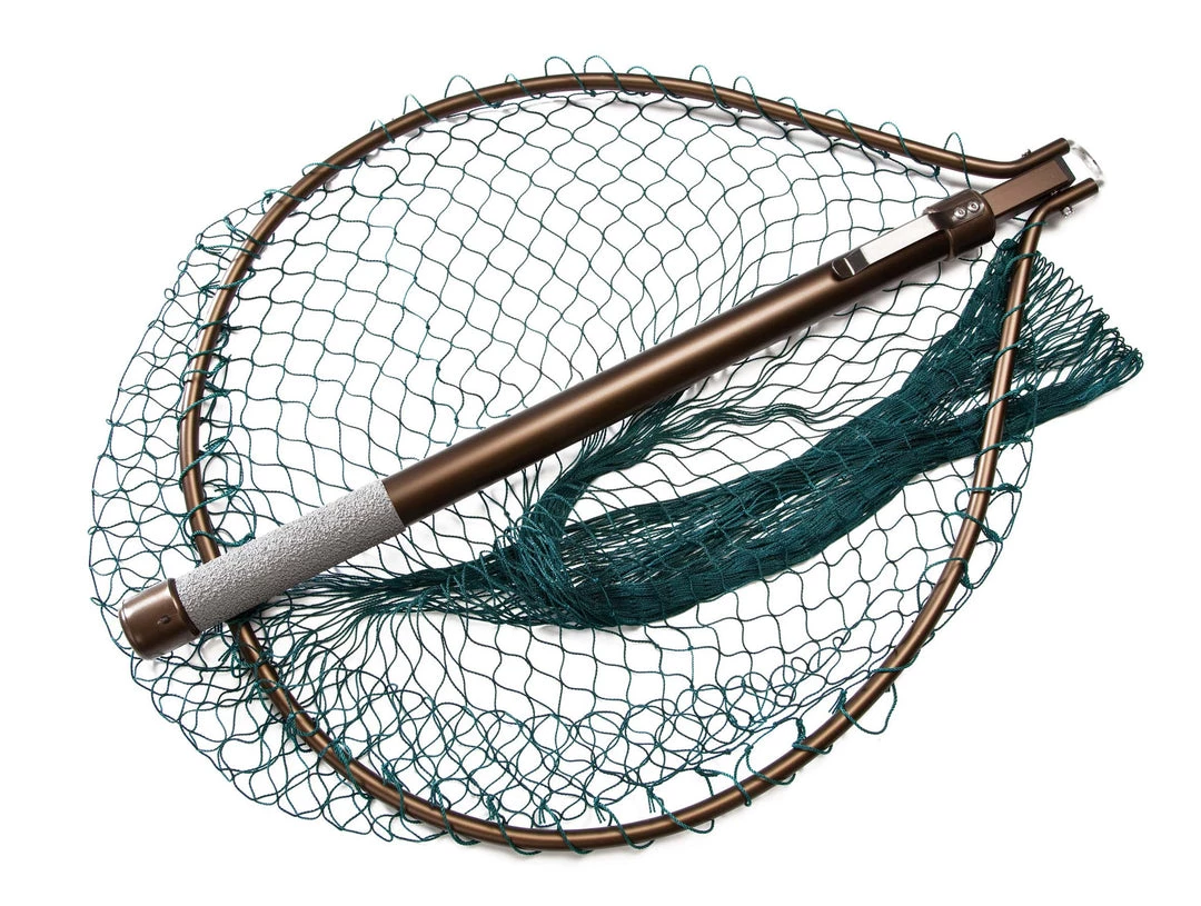 The McLean Hinged Ejector Net is for the angler who needs the net to be ready in seconds, simply press the button and the spring loaded handle shoots from 20″ to 31″ when you need that extra bit of reach. Offering a hinged fixed frame net which is 16″ wide and a 22″ bag, this is a great tool no matter what fish you happen to be targeting. It is of bronzed aluminium construction with a rubber grip handle and overall measures 48″ in length.