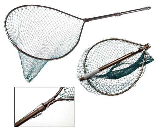 Theย McLean Telescopic Hinged Handle Weigh Landing Net has a fixed frame with a collapsible head. The net handle slides from 24” to 46” and has a belt clip for easy transport. The gape of the net is 19.5” by 17.5” and the full depth is 27”. When the net is fully opened the overall length is 54”. For fish conservation Mclean use a knotless mesh. Scales read up to an accurate 14lb and are concealed in the handle section of the net. When a fish is caught in the net all that is required is to pull the top of the net handle, which then allows the reading of the scale.