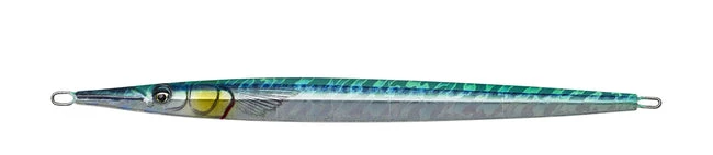 The Needle Jig is the perfect metal imitation of a needlefish! The Long slim body will cast a mile and have very little resistance in the water. The geometric profile makes the lure shimmer and flash on the fall, sliding and rolling away from the retrieve line – sending out flash and vibration in a very erratic movement pattern. The Body has a built-in steel rattle, which sends out a loud click sound on jigging, attracting predator fish from distance. The Needle Jig has hybrid action and can used perfect for Vertical Jigging, Shore Jigging, Cast Jigging and Slow Jigging.
