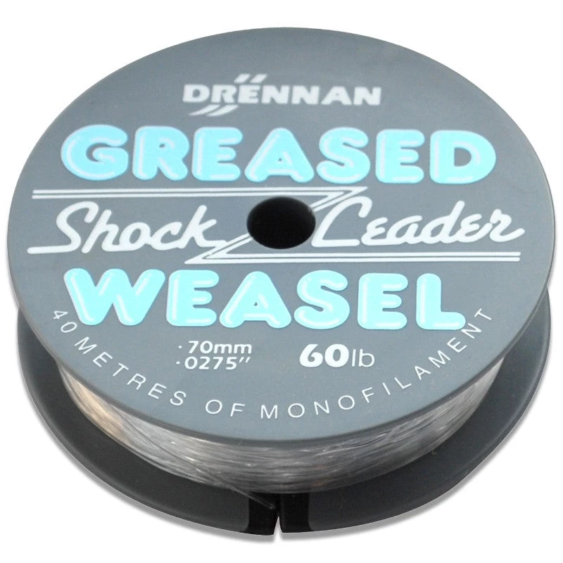 The Drennan Greased Weasel Shockleader line is a tough, abrasion resistant mono leader line which is perfect for both shockleaders and rig making. Available in clear, orange and grey colours you’ll find what you’re looking for in this highly versatile range of lines. From inshore and estuary fishing with 3oz leads right through to 6oz grippers belted to the horizon, you’ll find greased weasel will handle pretty much everything the modern shore angler can throw at it.