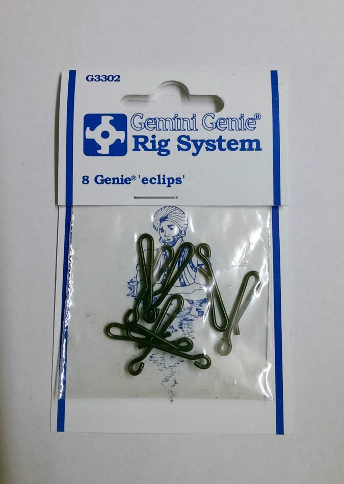 A standard Gemini Genie Link Clip treated to give a dark back finish for a covert approach. An exceptionally quick and easy link clip for attaching the rig to the shock leader or your sinker to the rig.