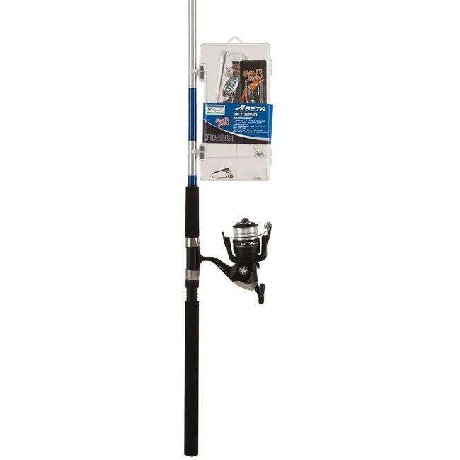The Shakespeare Catch More Fish 8ft Spin Kit includes an 8ft length rod with casting weight of 20-60g, the ideal starter kit for predator lure fishing.
