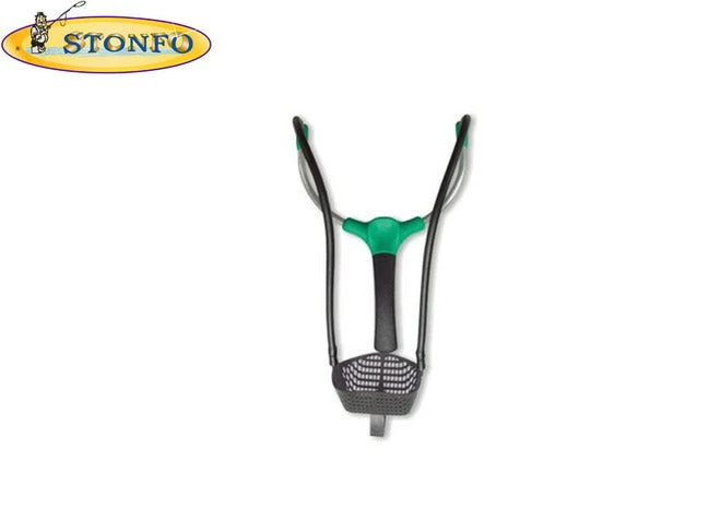 Aluminium catapult with anatomic plastic handle and new soft rubber groundbait pouch. Designed to deliver good quantity of bait at big distance easily, is supplied with extra super power elastics.