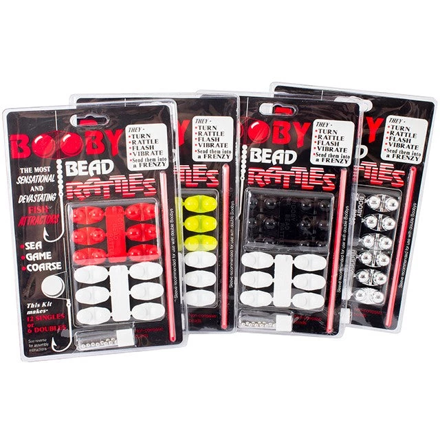 Booby Beads are excellent for attracting predatory fish. Spinning movements, bright colours and rattling from internal balls resonate through the water drawing inquisitive fish from a far. Can be used to make 12 single or 6 double attractors when fishing from either boat or shore.