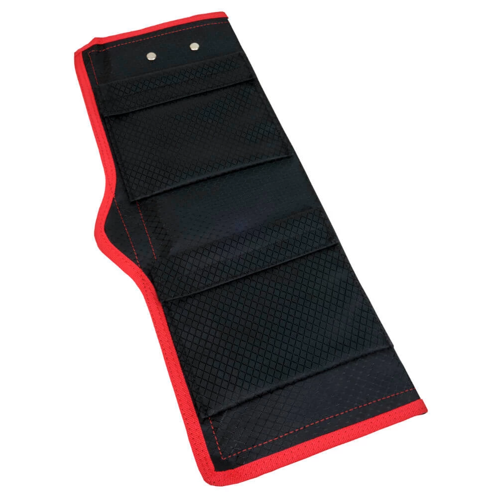 An innovative rig wallet that boat anglers, especially, have been crying out for, for years. This longer than standard rig wallet has been designed specifically for rigs made with booms. Ideal for storing short boomed rigs or rigs made with longer booms for flowing traces or for keeping spreader rigs stored neat and secure. The rig wallet is made from tough, water-resistant 420D Oxford Nylon material and is closed with Velcro to keep everything inside secure, with pull tabs to make it easy to access the wallet. On the back of the wallet, pockets allow for additional storage of snood lines, hooks and other accessories. Internally, there are long zip-locked pockets that are replaceable, for storing those longer boom rigs.