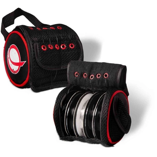 Special leader pocket with dispenser function. Not only is unwanted unwind-ing of expensive leader material in the bag a thing in the past, you can also pull off and cut tge desired length as required. Space for five spools of leader material and compatible with our Quantum EXO FC spools or steel leader spools