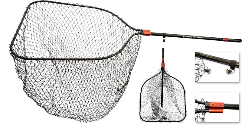 New landing net, specially designed for salmon anglers with a practical yet ultra-robust telescopic handle. The net can accommodate even monster salmon. Thanks to the supplied magnetic net holder, the net always lies on the shaft, minimising the risk of the net becoming tangled somewhere on the boat. The weight of the fish releases the magnet and the salmon is held securely in the deep net. Despite its telescopic design, the handle lacks nothing in terms of stiffness and stability.